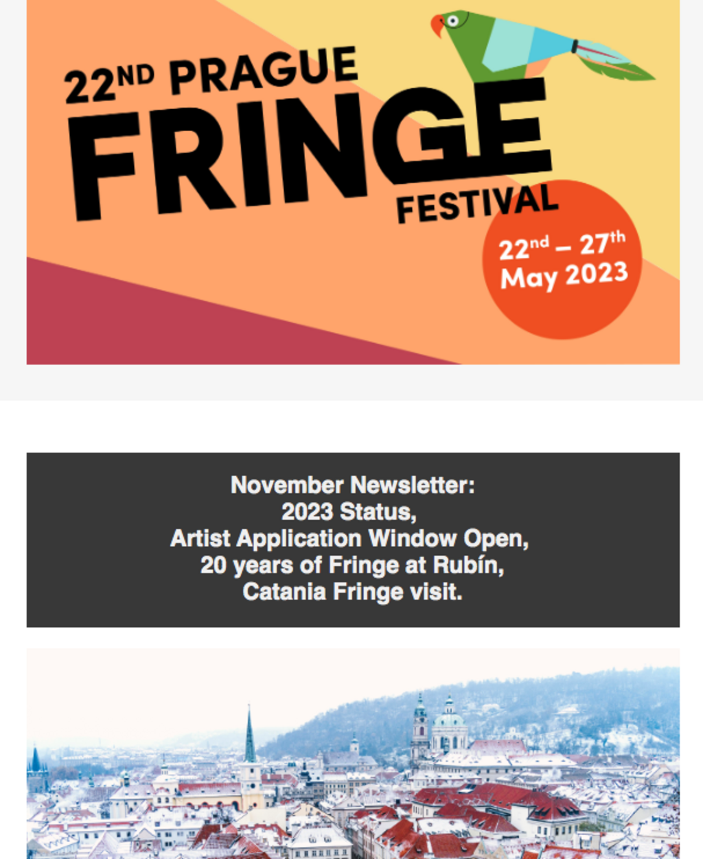 2023 Status, Artist Application Window Open, 20 years of Fringe at Rubín, Catania Fringe visit.